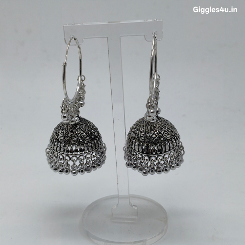 (Product Video in Description ) – Oxidized Silver Hoop Jhumkas (aa06)