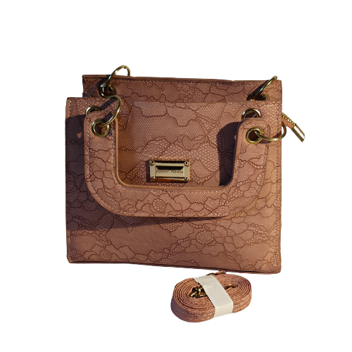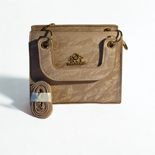 Textured Handbag with Detachable Strap – Beige (ab34)