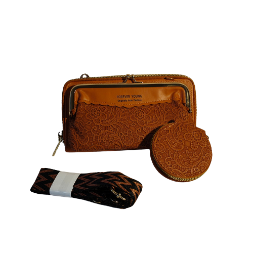 Crossbody Bag Set with Coin Purse and Patterned Strap