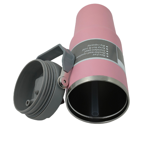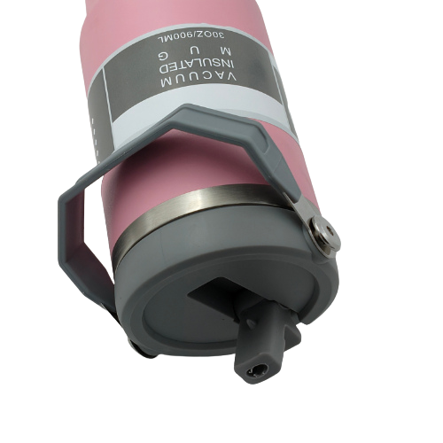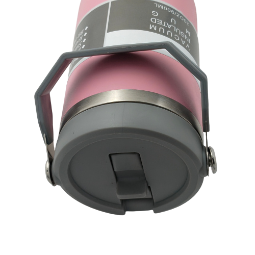 This high-capacity 900ml (30oz) vacuum-insulated tumbler is crafted with a double-wall stainless steel interior to keep beverages hot or cold for extended periods. Featuring a vibrant pink matte finish and a versatile grey lid, it includes a built-in flip-up straw and a robust, integrated carry handle for effortless portability. The tapered base is designed to fit most standard cup holders, making it the perfect companion for commutes, gym sessions, or outdoor adventures.