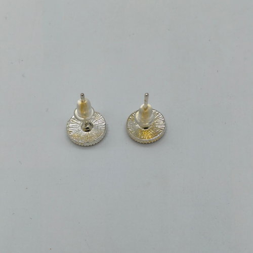 circular stud earrings, clear crystal pavé, compact jewelry, everyday silver studs, lightweight jewelry, minimalist sparkle, modern classic earrings, multi-stone studs, pavé crystal setting, rhodium-style finish, round disk earrings, shimmering silver finish, Silver-tone studs, textured back earrings, versatile accessories.