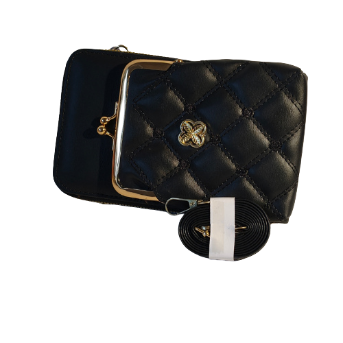 (Product Video in Description ) – Mobile Sling Bag with Metal Clasp & Detachable Strap – Black (ab39)
