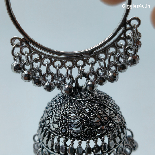 (Product Video in Description ) – Oxidized Silver Hoop Jhumkas (aa02)