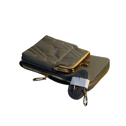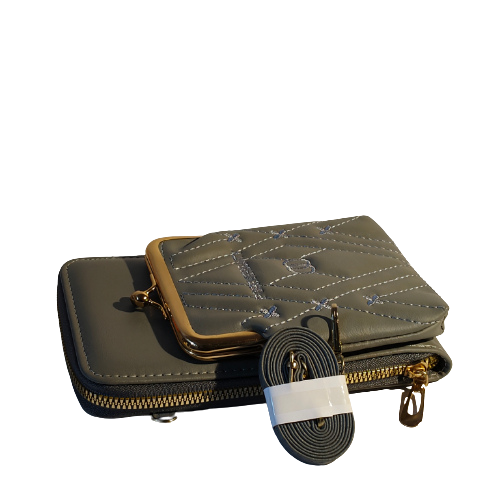 (Product Video in Description ) – Premium Quilted Mobile Sling Bag & Dual-Compartment Wallet with Gold-Tone Kiss-Lock Pocket, (ab42)