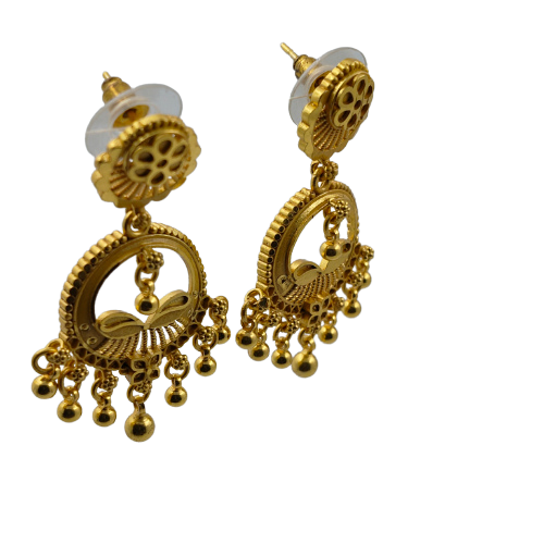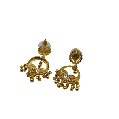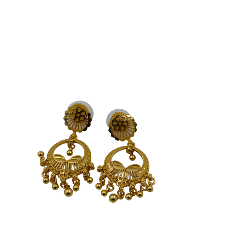 (Product Video in Description) – Traditional Gold-Plated Filigree Jhumka Earrings with Floral Studs and Dangle Bead Accents (aa25)