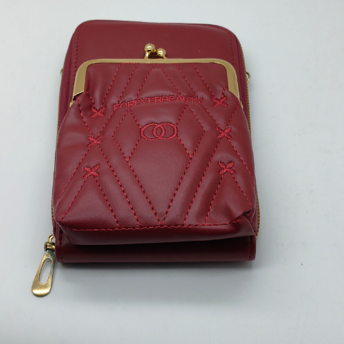 (Product Video in Description ) – Elegant Red Diamond-Pattern Sling Wallet with Gold Hardware (ab43)